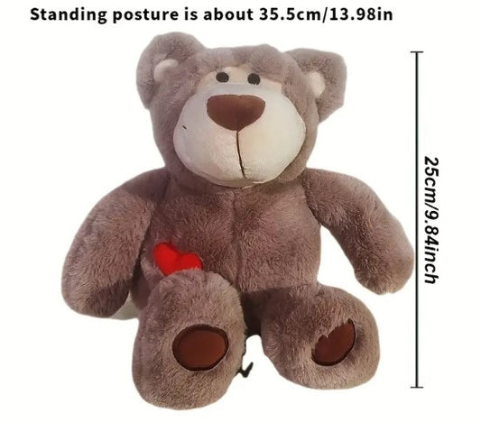 Dark Gray Soft Plush Heart Teddy Bear - With Pets Ashes Inside