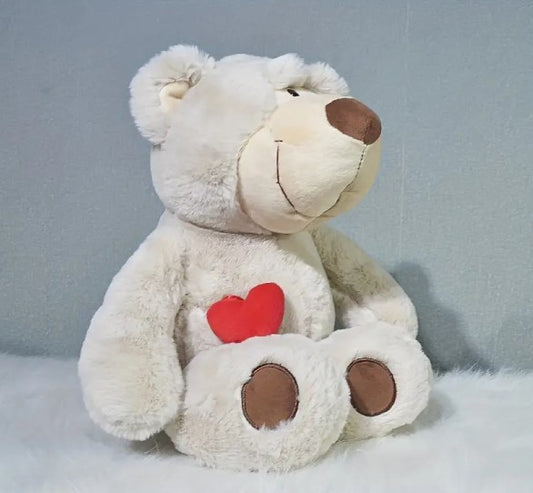 White Soft Plush Heart Teddy Bear - With Pets Ashes Inside
